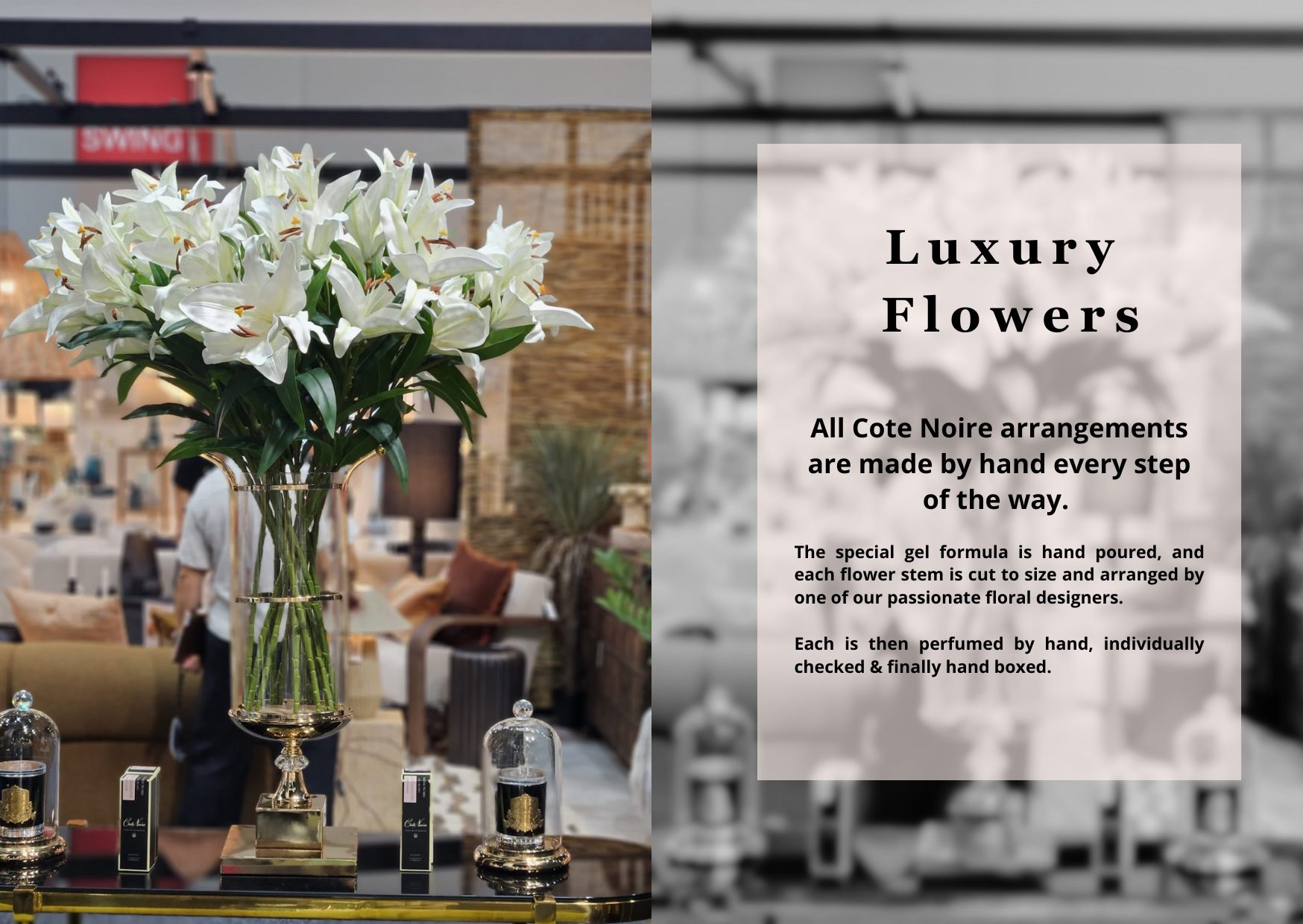 These Luxury Grand Bouquets are beautifully packaged in a hand made Cote Noire box. They include 2 x 15 ml fragrance sprays.