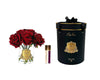 Each life-like French Rose Bouquet has been skilfully hand crafted and is set in gel giving it the appearance of water. Each petal has a special natural coating to give them a true to life touch & appearance. Arranged in a Luxury vase with gold Cote Noire badge.